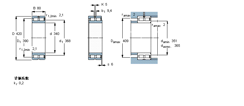 | 圓柱滾子軸承, 雙列滿(mǎn)裝滾子, 無(wú)密封件, 單方向軸向負(fù)荷的擋邊 | ||||||||||