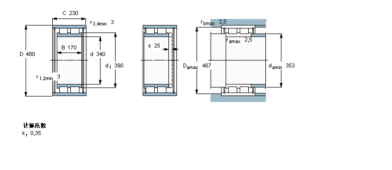 | 圓柱滾子軸承, 雙列滿裝滾子, 無(wú)密封件, 沒(méi)有載荷支承能力 | ||||||||||