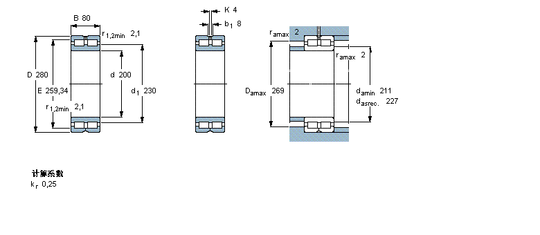 系列:圓柱滾子軸承, 雙列滿裝滾子, 無密封件, 雙方向軸向負(fù)荷的擋邊